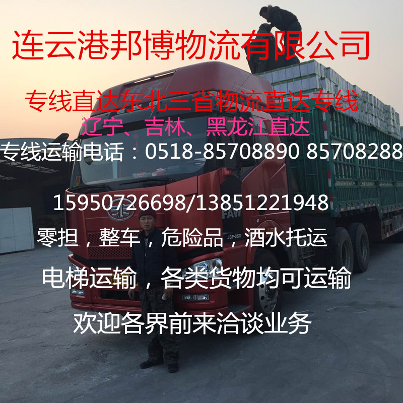 连云港邦博物流有限公司是一家专营连云港至全国各地往返货运运输 ,物流配送,仓储, 商品车货运等物流业务。快速直达全国各地,真正实现货运零风险,安全可靠.目前,本公司已经拥有一大批高品质的全程物流客户资源,正在逐步形成以连云港为物流管理中心,辐射江苏,上海,北京,云南,贵州,四川,拉萨,新疆,甘肃,宁夏,内蒙,东三省等全国各主要城市的物流运输与管理网络体系,一次合作,共创双赢!24小时服务为您服务, 欢迎新老客户来电来人洽谈业务!